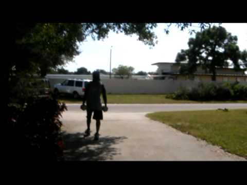 1) Simply grab two heavy dumbbells and find an unobstructed path (100 feet minimum would be ideal).